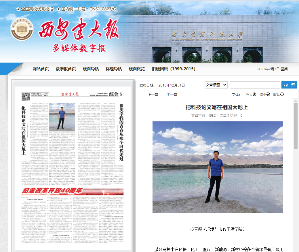 【西安建大报】把科技论文写在祖国大地上