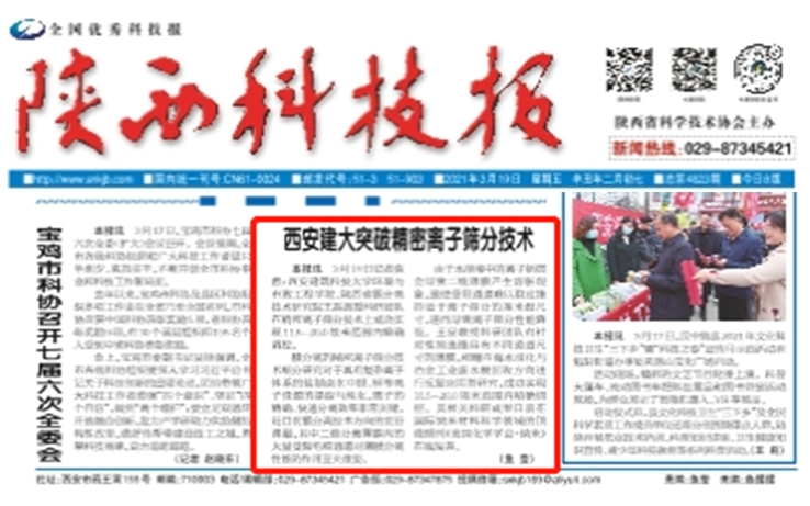 【陕西科技报】【陕西群众新闻网】西安建大突破精密离子筛分技术
