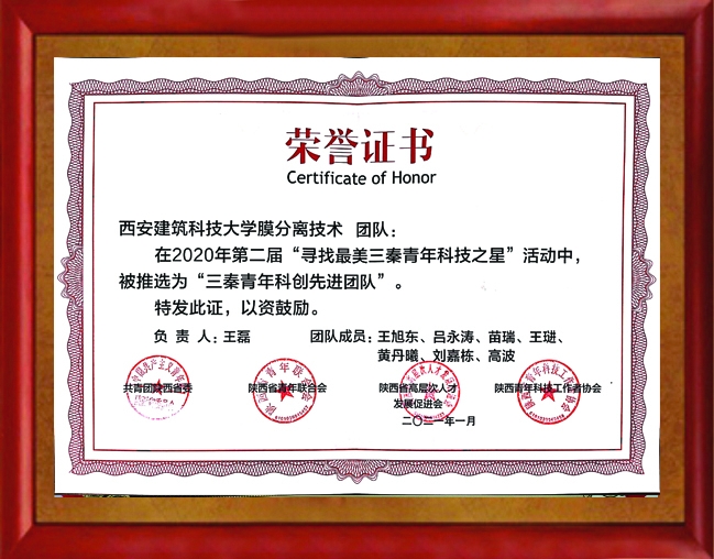 2020年荣获“三秦青年科创先进团队"