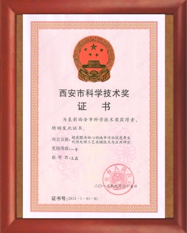 2012年西安市科学技术 一等奖