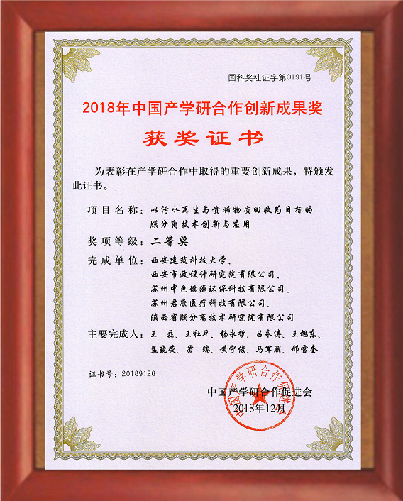 2018年中国产学研合作创新成果 二等奖